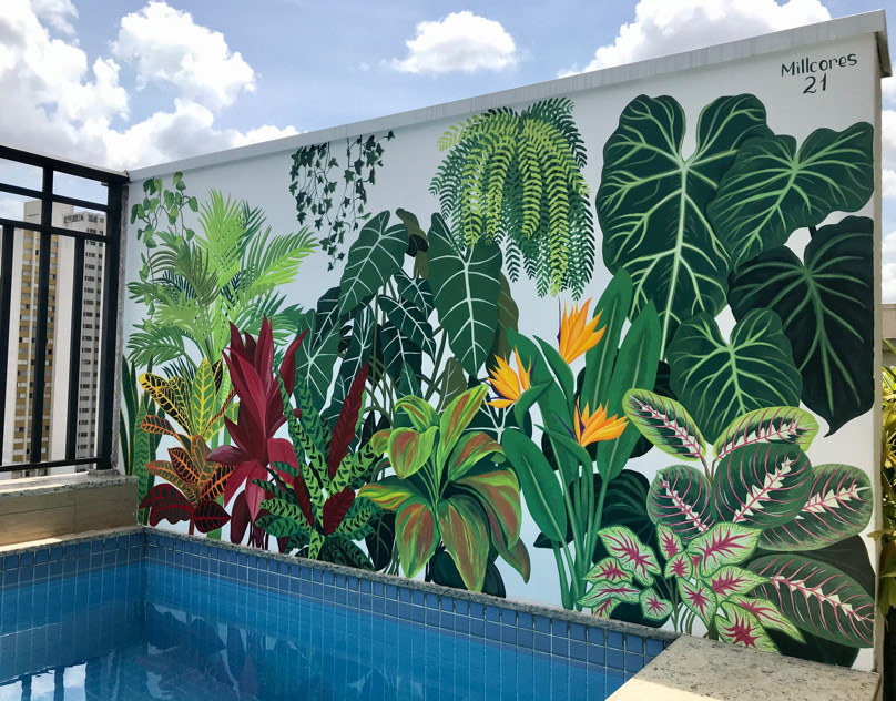Mural botânico em residência